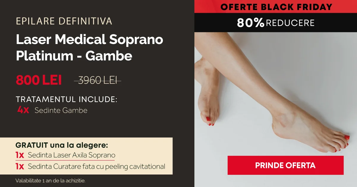 / Epilare definitiva cu laser medical -Soprano Platinum-gambe – 4 sedinte