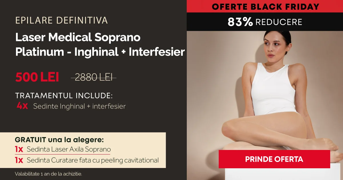 / Epilare definitiva cu laser medical Soprano Platinum – inginal + interfesier – 4 sedinte
