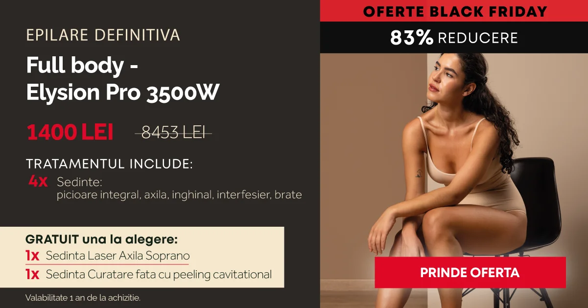 Epilare definitiva full body – 4 sedinte: picioare integral, axila, inghinal, interfesier, brate