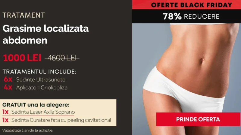 Tratament grasime localizata abdomen – 4 aplicatori Criolipoliza + 6 sedinte Ultrasunete