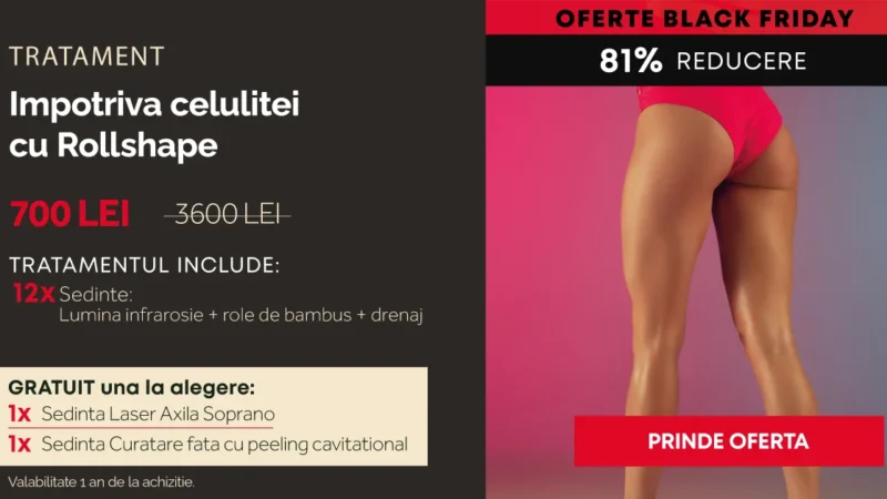 Tratamentul celulitei cu Rollshape – 12 sedinte (lumina infrarosie + role de bambus + drenaj )